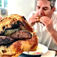 That's my brother Chad digging into day-after-the-smoke Brisket sliders. The Cheddar rolls from Round Swamp Farms make 'em extra-special. barbecue